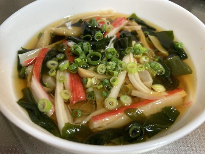 材料(2人分) 味付穂先メンマ 40g カニカマ 60g カットわかめ 小さじ4 小ネギ 適量 しょ …続きを読む